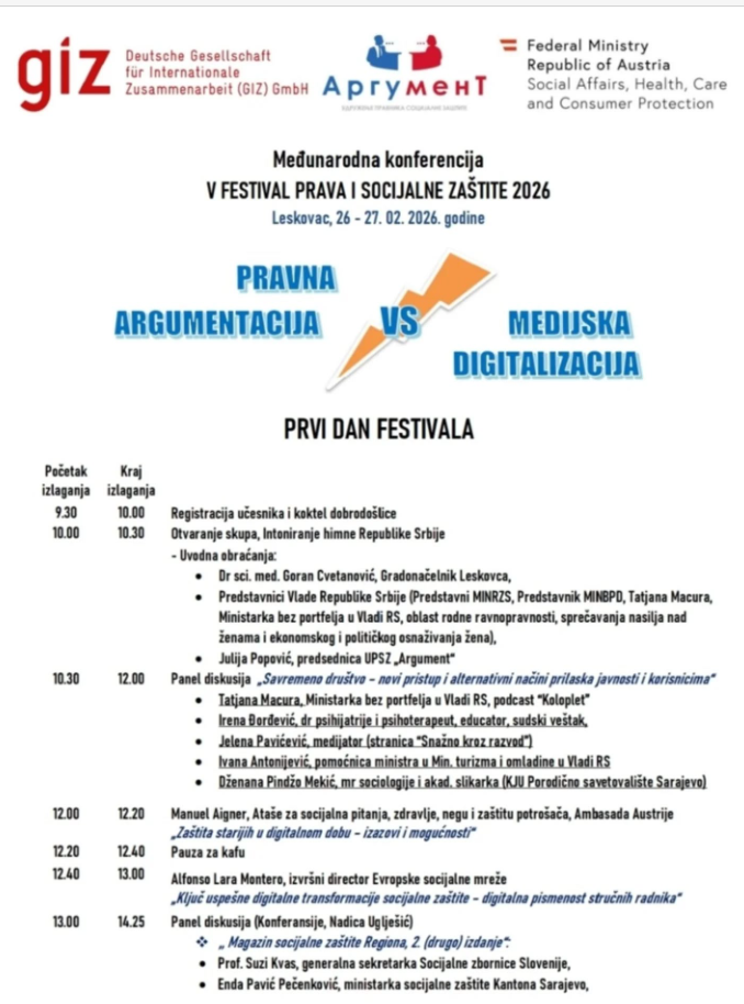 Републички завод за социјалну заштиту укључио се у реализацију Међународне конференције V Фестивал права и социјалне заштите, који организује АРГУМЕНТ – Удружење правника социјалне заштите.