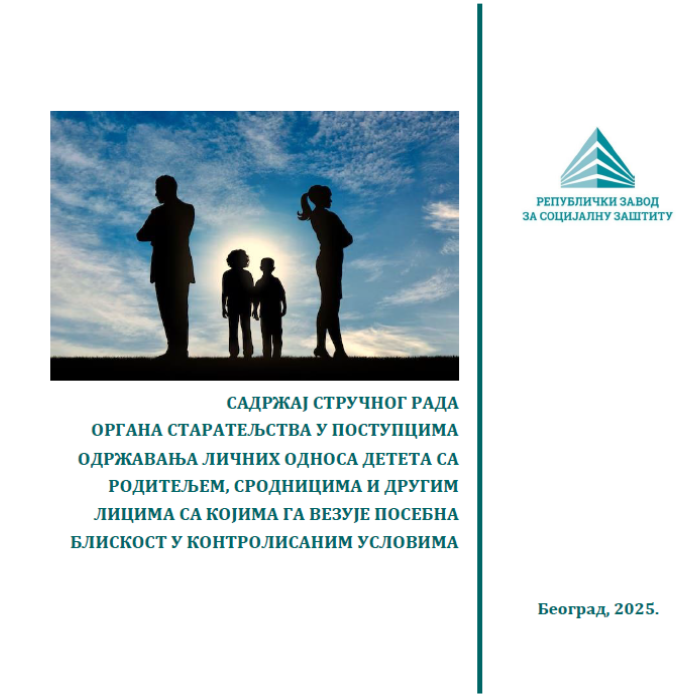 Републички завод за социјалну заштиту – Одељење за супервизију приредило је стручно-методолошко упутство и дефинисало садржај стручног рада органа старатељства у поступцима одржавања личних односа детета са родитељем, сродницима и другим лицима са којима га везује посебна блискост у контролисаним условима